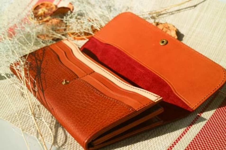 表革はイタリア製最高級レザー、裏革はピッグスウェードを使用し日本の職人が丁寧に仕上げました。カラフルな色合わせが魅力のバイカラーデザイン◎男女問わず使える、イタリアンPOPなフラップ付き長財布ですので、大切な方へのささやかな贈り物にぴったりです。